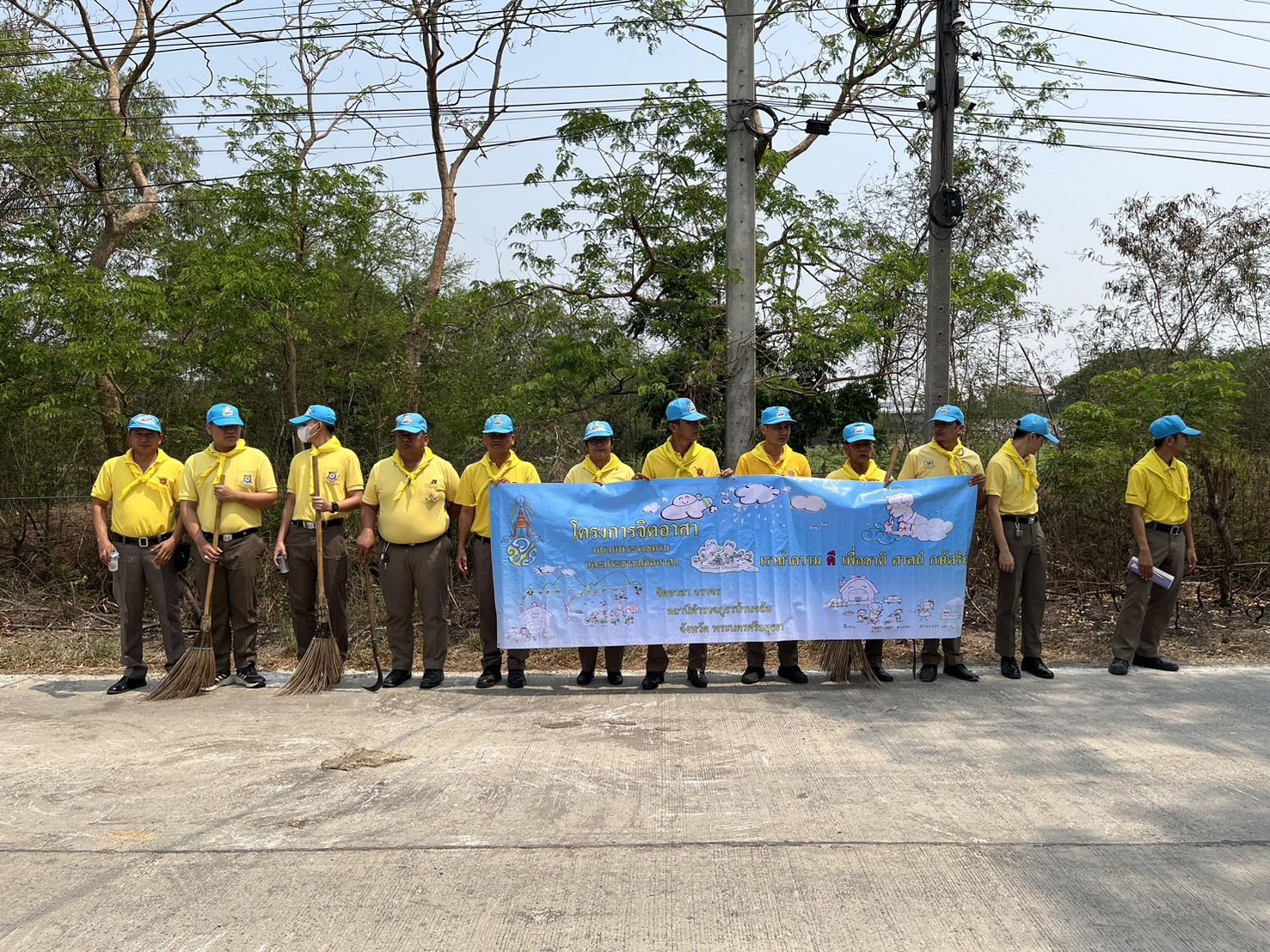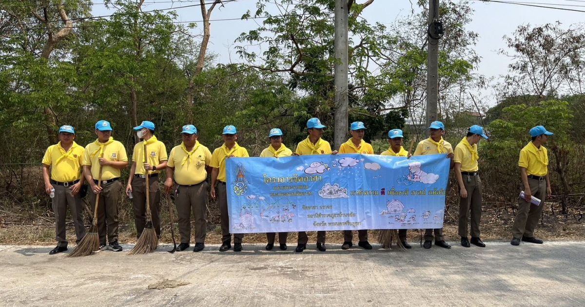 พร้อมข้าราชการตำรวจจิตอาสา สภ.บ้านขล้อ จำนวน 23 นาย ตัดกิ่งไม้เพื่อปรับภูมิทัศน์จราจรริมถนนสายบ้านขล้อ-นครหลวง(อย.3013) หมู่ที่ 1 ต.บ้านขล้อ อ.บางปะหัน จ.พระนครศรีอยุธยา
