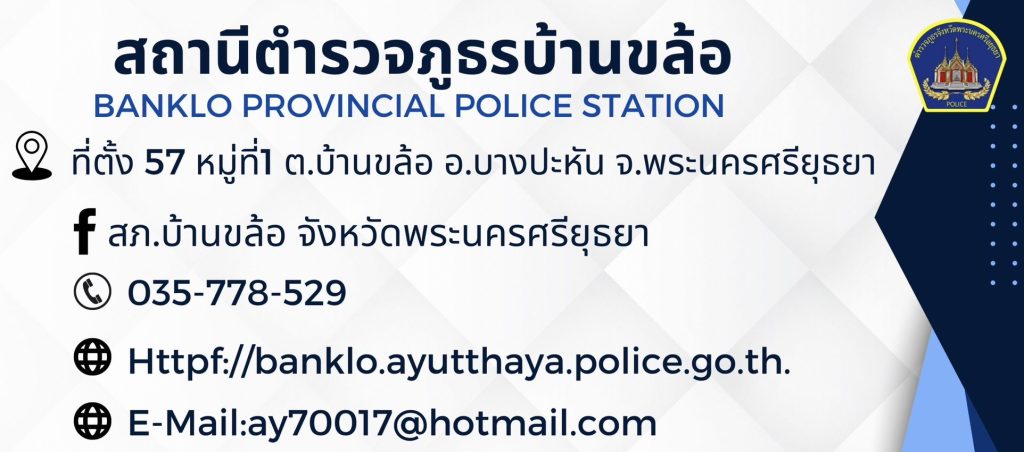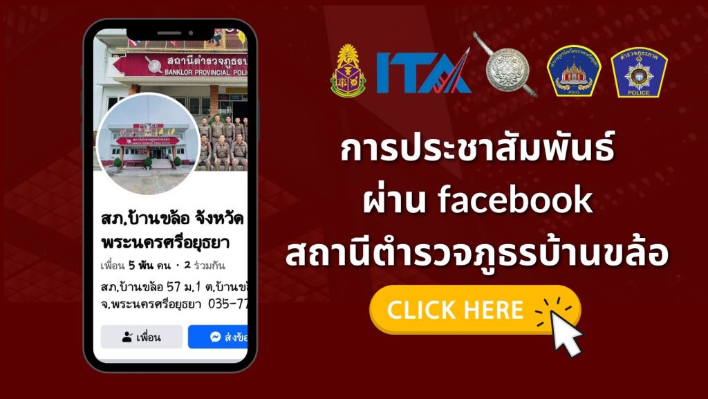 ช่องทางติดต่อ และ ติดตามข่าวสาร facebook สถานีตำรวจภูธรบ้านขล้อ คลิ๊กที่นี่